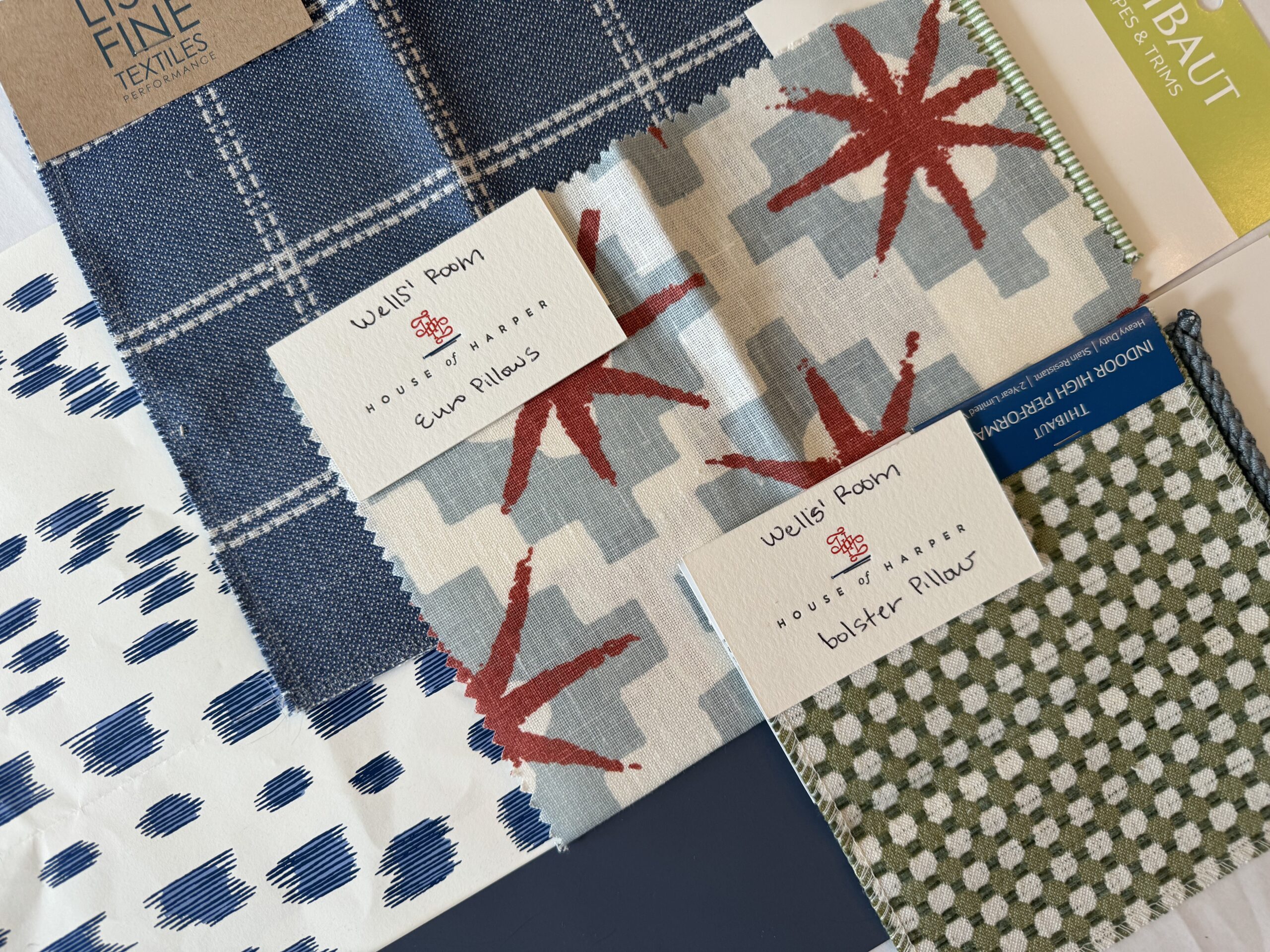 In-Person Selections – Caroline can bring fabric and wallpaper samples to your home to help you make selections for pillows, window treatments, wallpaper and more.